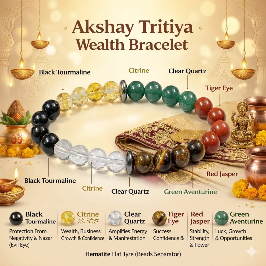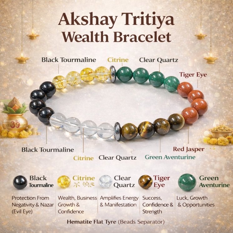 рдЕрдХреНрд╖рдп рддреГрддреАрдпрд╛ рдХреЗ рдкрд╛рд╡рди рдкрд░реНрд╡ рдкрд░, рд╣рдо рд▓реЗрдХрд░ рдЖрдП рд╣реИрдВ рдЦрд╛рд╕ рдЖрдкрдХреЗ рд▓рд┐рдП ‘рд╢реНрд░реА рд▓рдХреНрд╖реНрдореА рдЖрдзреНрдпрд╛рддреНрдорд┐рдХ рдмреНрд░реЗрд╕рд▓реЗрдЯ’ред рд╢рд╛рд╕реНрддреНрд░реЛрдВ рдХреЗ рдЕрдиреБрд╕рд╛рд░, рдЗрд╕ рд╢реБрдн рджрд┐рди рдкрд░ рд╢реБрд░реВ рдХрд┐рдпрд╛ рдЧрдпрд╛ рдХрд╛рд░реНрдп рдФрд░ рдзрд╛рд░рдг рдХреА рдЧрдИ рд╡рд╕реНрддреБ ‘рдЕрдХреНрд╖рдп’ рдлрд▓ рджреЗрддреА рд╣реИред рдорд╛рдБ рд▓рдХреНрд╖реНрдореА рдХреА рдЕрд╕реАрдо рдХреГрдкрд╛ рдФрд░ рдШрд░ рдореЗрдВ рд╕реНрдерд╛рдпреА рдмрд░рдХрдд рдкрд╛рдиреЗ рдХреЗ рд▓рд┐рдП рдпрд╣ рдмреНрд░реЗрд╕рд▓реЗрдЯ рдПрдХ рджрд┐рд╡реНрдп рдЙрдкрд╣рд╛рд░ рд╣реИред