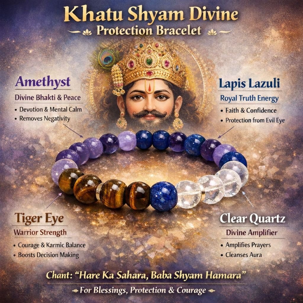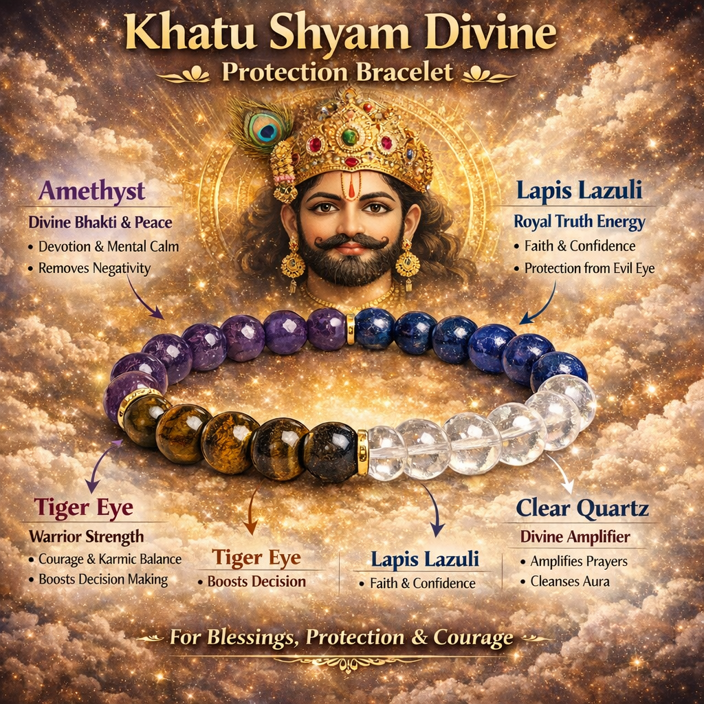 The Khatu Shyam Divine Protection Bracelet unites gemstones blessed with spiritual energy: